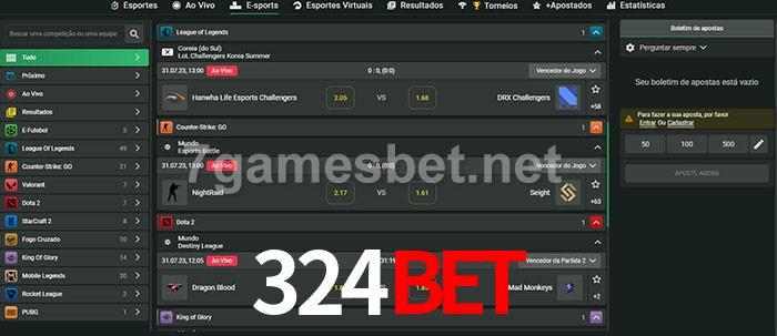 A aposta 324bet oferece aos jogadores a experiência mais conveniente de apostas em eSports!